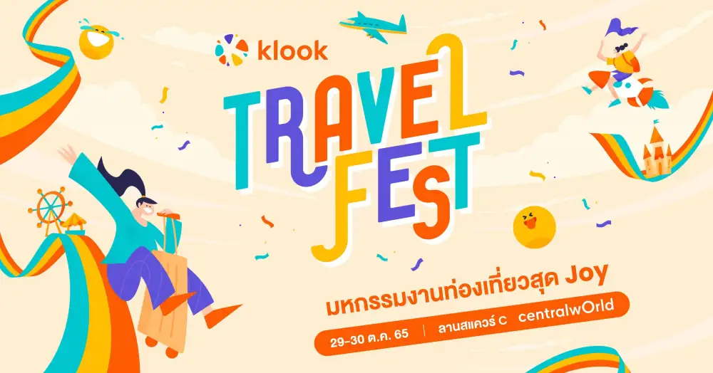 - งาน Klook Travel Fest จัดขึ้นเพื่อเฉลิมฉลองการกลับมาของการท่องเที่ยว โดยจะจัดขึ้นในวันที่ 29-30 ตุลาคม 2565 ณ ลาน Square C ชั้น 1 เซ็นทรัลเวิลด์