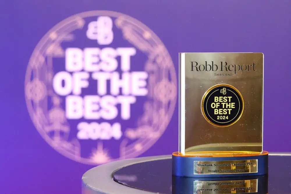 นายอารภัฏ สังขรัตน์ ประธานเจ้าหน้าที่บริหารและกรรมการบริหาร บมจ.หลักทรัพย์ เมย์แบงก์ (ประเทศไทย) รับรางวัล Best of the Best 2024 ประเภท Wealth Visionary Award จาก Robb Report Thailand ซึ่งเป็นนิตยสารและแพลตฟอร์มสื่อระดับโลกที่เน้นเนื้อหาเกี่ยวกับสินค้าหรูหราและไลฟ์สไตล์ระดับสูง รางวัลนี้ตอกย้ำการเป็นผู้นำที่ปรึกษาด้านการลงทุนของเมย์แบงก์ภายใต้แนวคิด Democratizing Investment ที่ให้ความสำคัญกับการดำเนินนโยบายทางธุรกิจเพื่อสร้างคความมั่งคั่งยั่งยืน ให้ความรู้ด้านการลงทุนที่ถูกต้องและปลอดภัยทั้งแก่นักลงทุนและประชาชนทั่วไป สร้างโอกาสการลงทุนที่เท่าเทียม งานมอบรางวัลจัดขึ้น ณ ห้องบอลรูม โรงแรมอินเตอร์คอนติเนนตัล เมื่อเร็วๆนี้
