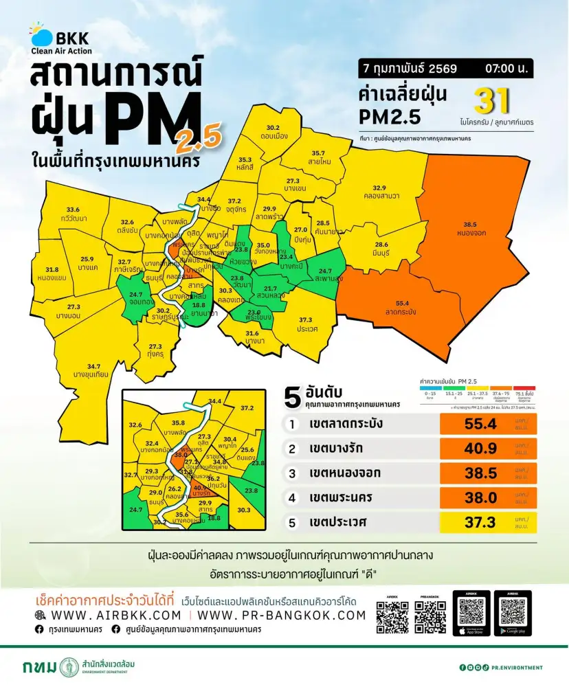 11:19น. –สำนักข่าวอินโฟเควสท์ (IQ) ศูนย์สื่อสารการแก้ไขปัญหามลพิษทางอากาศ (ศกพ.) กรมควบคุมมลพิษ รายงานการติดตามตรวจสอบคุณภาพอากาศ เมื่อเวลา 07.00 น. ที่ผ่านมา ภาพรวมปริมาณ PM2.5...