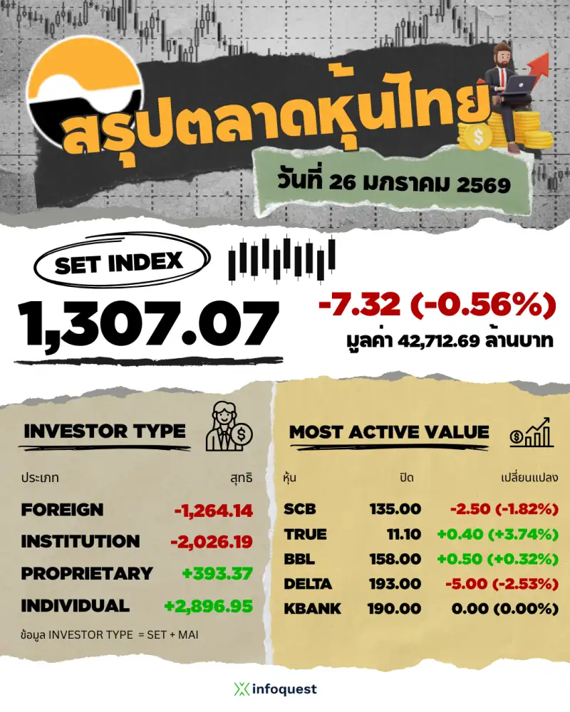 15:58น. –สำนักข่าวอินโฟเควสท์ (IQ) ดัชนีฮั่งเส็งตลาดหุ้นฮ่องกงปิดบวก 4 วันทำการติดต่อกันในวันนี้ (26 ม.ค.) โดยได้รับแรงหนุนจากหุ้นกลุ่มอสังหาริมทรัพย์และการเงินที่ปรับตัวขึ้น...