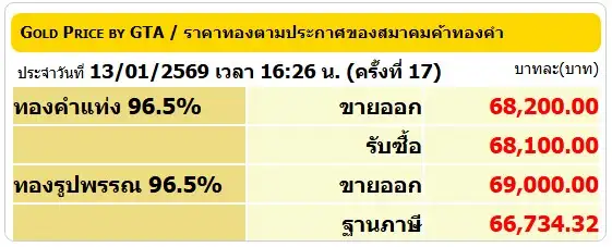 18:02น. –สำนักข่าวอินโฟเควสท์ (IQ) ราคาทองคำ (96.5%) ขายปลีกในประเทศวันนี้ ปรับตัวเพิ่มขึ้นจากเมื่อวานรวม 500 บาท ตามสถานการณ์ราคาทองในตลาดโลก...