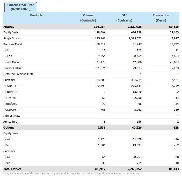 17:26น. –สำนักข่าวอินโฟเควสท์ (IQ) เว็บไซต์ตลาดหลักทรัพย์แห่งประเทศไทย รายงานสรุปการซื้อขายหลักทรัพย์ โดยแบ่ง ตามประเภทนักลงทุน ประจำวันที่ 7 มกราคม 2569 ดังนี้ กลุ่ม ...