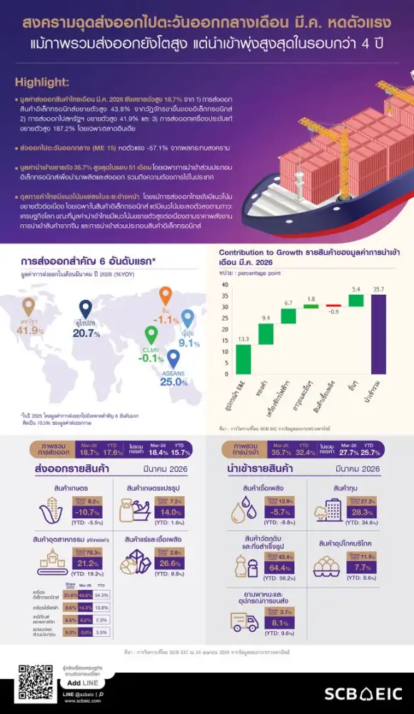 12:28น. –สำนักข่าวอินโฟเควสท์ (IQ) ศูนย์วิจัยเศรษฐกิจและธุรกิจ ธนาคารไทยพาณิชย์ (SCB EIC) ประเมินว่า ดุลการค้าไทย มีแนวโน้มแย่ลงอีกในระยะข้างหน้า ทั้งนี้ เนื่องจามูลค่าการส่งออกไทย...