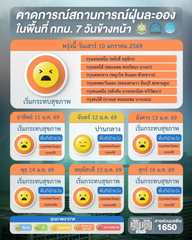ฝุ่นวันเด็ก PM2.5 ระดับสีส้มท่วม 21 พื้นที่ในกรุงเทพฯ