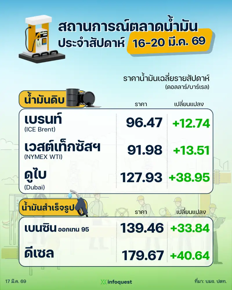 09:37น. –สำนักข่าวอินโฟเควสท์ (IQ) ปตท. รายงานสถานการณ์ตลาดน้ำมัน สัปดาห์ที่ 16-20 มี.ค. 69บริษัท ปตท. จำกัด (มหาชน) รายงานสถานการณ์ตลาดน้ำมัน สัปดาห์วันที่ 16-20 มี.ค. 69...