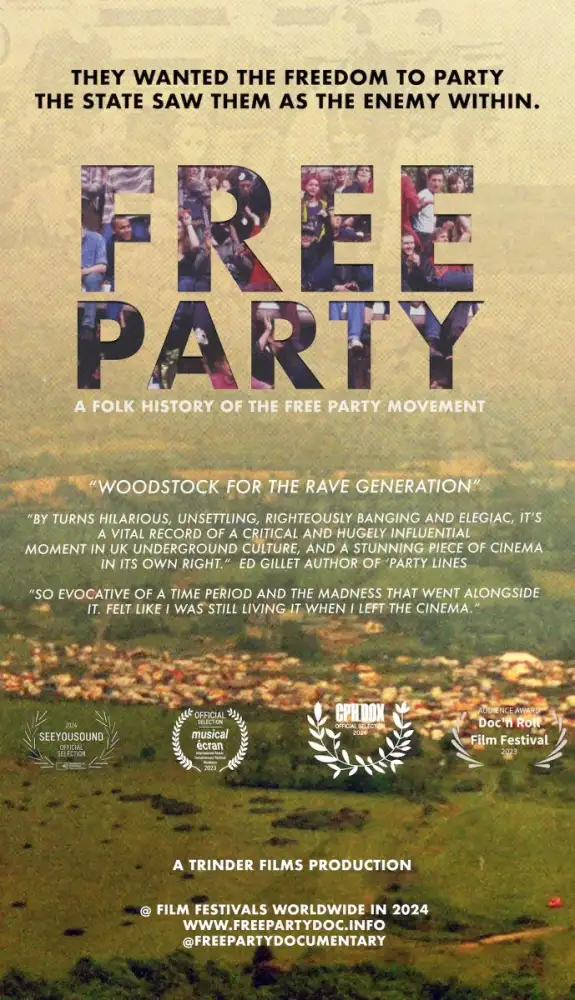 FREE PARTY: A Folk History is a major new, independently made, feature documentary following the birth of the free party movement in the late 80s and early 90s and the impact it's had on our present times. The film follows the inception of the movement, a meeting between ravers and the new age travellers during Thatcher's last days in power, and the explosive years that followed, leading up the infamous Castlemorton free festival in 1992 - the largest ever illegal rave, which provoked the drastic change of the laws of trespass with the notorious introduction of the Criminal Justice Act in 1994.