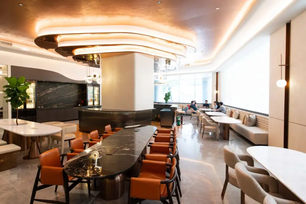 "The main highlight of 'KTC TOUCH' is the counter bar area, uniquely designed to be a welcoming and waiting point for visitors, using contrasting materials and decoration styles that are perfectly combined. To create a unique atmosphere for the space with unique materials such as marble, reused wood pieces and concrete, as well as the individually designed decorative lighting. We collaborated with dwp to create this 'KTC TOUCH', which is both elegant and functional."