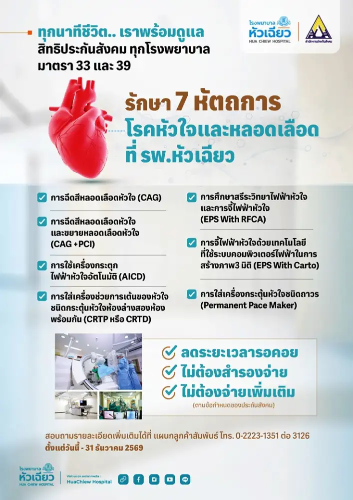 16:57น. –ThaiPR.net โรงพยาบาลหัวเฉียว ได้รับความไว้วางใจจากสำนักงานประกันสังคม สามารถรักษาโรคหัวใจและหลอดเลือด แก่ผู้ประกันตนในระบบประกันสังคม มาตรา 33 และ 39 ครอบคลุม 7...