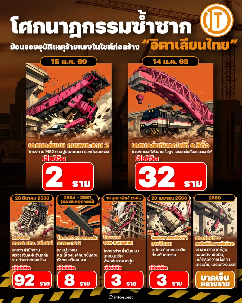 10:36น. –สำนักข่าวอินโฟเควสท์ (IQ) เมื่อเวลา 09.15 น. เกิดเหตุเครนก่อสร้างโครงการทางยกระดับ สายเอกชัย-บ้านแพ้ว หรือมอเตอร์เวย์ M82 ตอน 7 ถล่มลงมาบนผิวการจราจร ถ.พระราม 2...