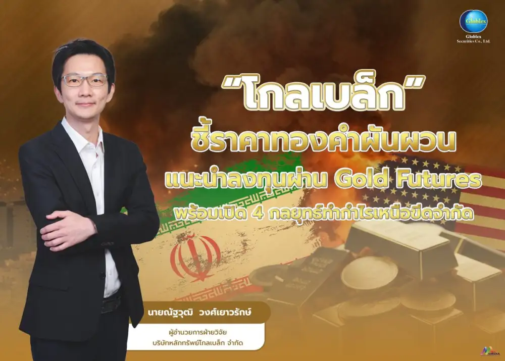 13:44น. –ThaiPR.net บล.โกลเบล็ก ชี้ราคาทองผันผวนหนัก จากปัจจัยสงครามตะวันออกกลางระอุอย่างเนื่อง พร้อมแนะ 4 กลยุทธ์ลงทุนทองผ่าน "Gold Futures" ปลอดภัย ใช้เงินเพียง 5-10%...
