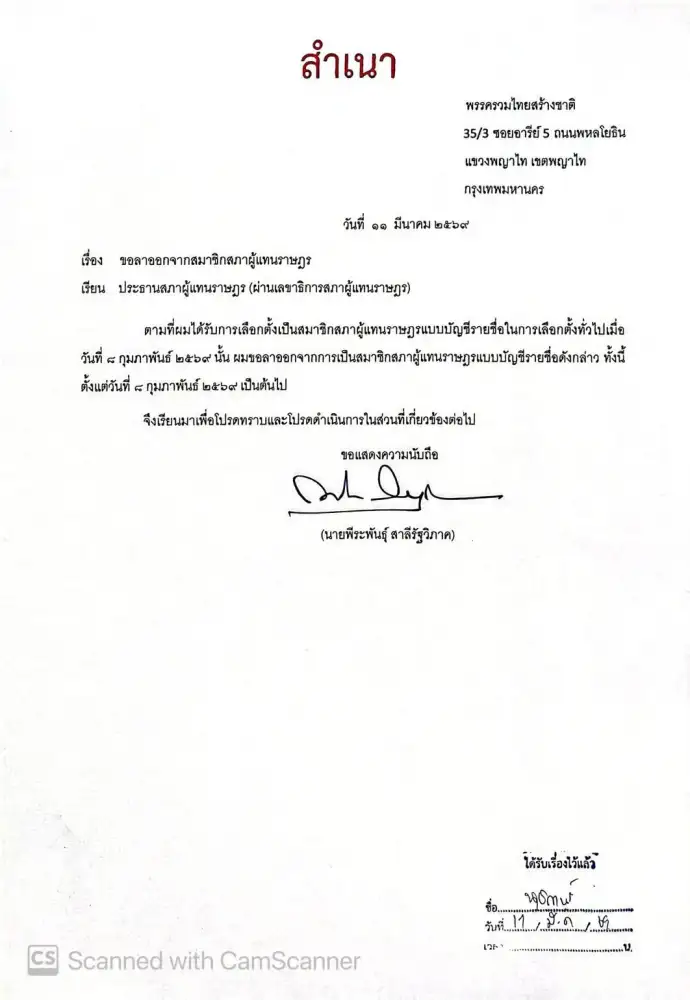 11 มี.ค. –สำนักข่าวอินโฟเควสท์ (IQ) นายพีระพันธุ์ สาลีรัฐวิภาค สส.บัญชีรายชื่อ พรรครวมไทยสร้างชาติ ในฐานะหัวหน้าพรรค ได้ยื่นหนังสือลาออกจากสมาชิกผู้แทนราษฏรแบบบัญชีรายชื่อ...