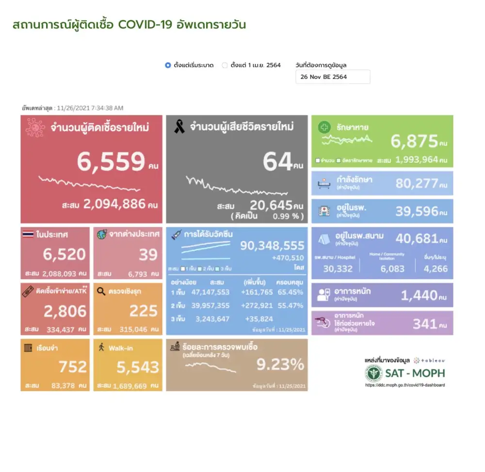 สำหรับจำนวนผู้ป่วยยืนยันสะสมในประเทศตั้งแต่ต้นปี 63 จนถึงล่าสุดอยู่ที่ 2,094,886 ราย โดยมีผู้ป่วยรักษาหายแล้วเพิ่มขึ้น 6,875 ราย ยอดเสียชีวิตสะสมเพิ่มเป็น 20,645 ราย