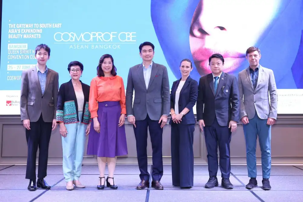 นายสรรชาย นุ่มบุญนำ ผู้จัดการทั่วไป อินฟอร์มา มาร์เก็ตส์ ประเทศไทย พร้อมด้วย นางสาวแองเจิล ฟู ผู้อำนวยการโครงการ อินฟอร์มา มาร์เก็ต, นางสาวฟรานเชสกา โดนาติ ผู้บริหารด้านการตลาดระหว่างประเทศ เอเชีย โบโลญญาเฟียร์ คอสโมพรอฟ และ นางเกศมณี เลิศกิจจา นายกสมาคมผู้ผลิตเครื่องสำอางไทย แถลงข่าวจัดงาน Cosmoprof CBE ASEAN Bangkok 2025 งานแสดงสินค้าอุตสาหกรรมความงามระดับภูมิภาคที่ใหญ่ที่สุด ระหว่างวันที่ 25-27 มิถุนายน 2568 ณ ศูนย์การประชุมแห่งชาติสิริกิติ์ งานในปีนี้รวบรวมแบรนด์ความงามกว่า 2,000 แบรนด์จากผู้แสดงสินค้ากว่า 650 ราย พร้อมตอกย้ำบทบาทการเป็นเวทีสำคัญในการขับเคลื่อนอุตสาหกรรมความงามอาเซียนสู่การเติบโตอย่างยั่งยืนและแข่งขันได้ในระดับสากล ณ โรงแรมแกรนด์ เซนเตอร์ พอยต์ ลุมพินี เมื่อเร็ว ๆ นี้