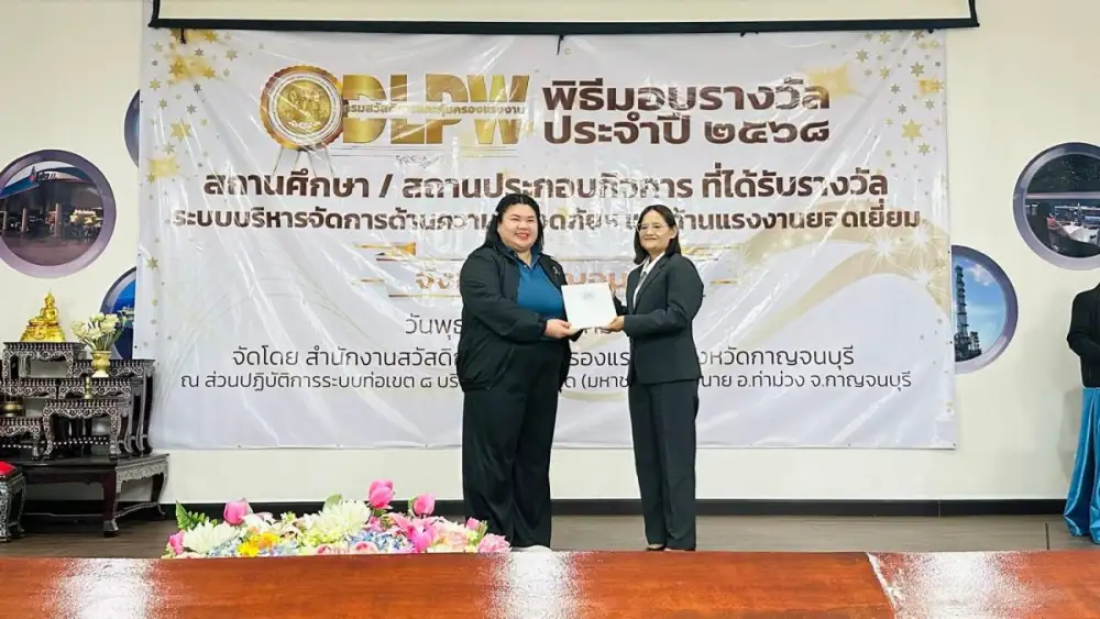 บริษัท เจียไต๋ จำกัด (สถานีวิจัยกาญจนบุรี) รับมอบประกาศนียบัตรมาตรฐานการป้องกันและแก้ไขปัญหายาเสพติดในสถานประกอบกิจการ (มยส.) ประจำปี 2568 จากกรมสวัสดิการและคุ้มครองแรงงาน กระทรวงแรงงาน ณ ศูนย์ปฏิบัติการระบบท่อส่งก๊าซเขต 8 (ปตท.) จังหวัดกาญจนบุรี