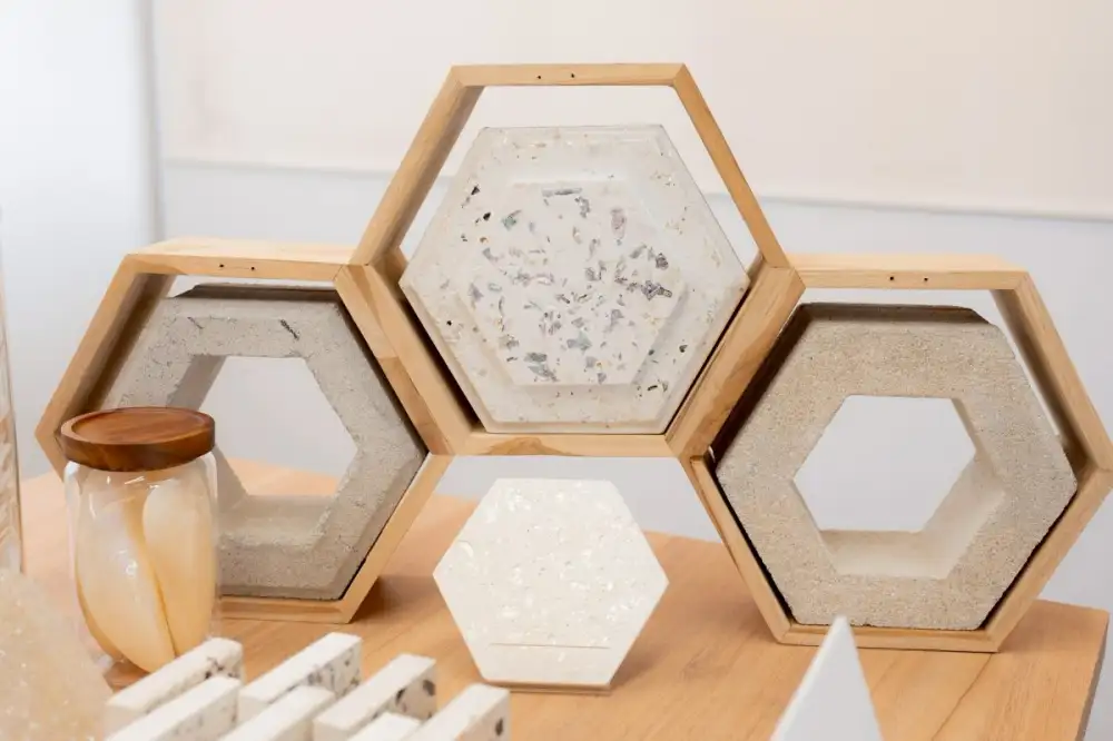 หัวใจของ Bio Responsive Block รูปแบบปัจจุบันอยู่ที่การผสมระหว่างเปลือกหอยบดกับปูนเทอร์ราซโซ (Terrazzo) ซึ่งเป็นปูนที่ใช้ทำพื้นหินขัดมาแต่เดิม ความแตกต่างระหว่างรูปแบบแรกที่ใช้ปูนขาวจากกระบวนการเผากับรูปแบบการบด ไม่ใช่แค่เรื่องของสูตรส่วนผสม แต่คือการยกระดับจาก "วัสดุก่อสร้าง" ไปสู่ "วัสดุตกแต่งที่มีมูลค่า"