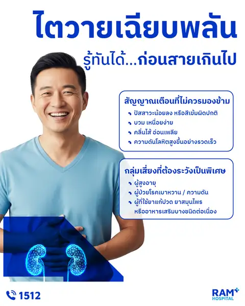รู้ตัวเร็ว รู้ตัวไว! โรคไตป้องกันได้ เรื่องเล่าจากหมอเฉพาะทางโรคไตข่าวการจากไปของนักแสดงตลก จากภาวะไตวายเฉียบพลันเป็นอีกหนึ่งเหตุการณ์ที่ทำให้เราเห็นว่า"โรคนี้เกิดขึ้นเร็ว และอาจไม่ทันตั้งตัว" แต่สิ่งที่หลายคนยังไม่รู้คือไตวายเฉียบพลันสามารถป้องกันและลดความรุนแรงได้ หากรู้สัญญาณตั้งแต่เนิ่น ๆ