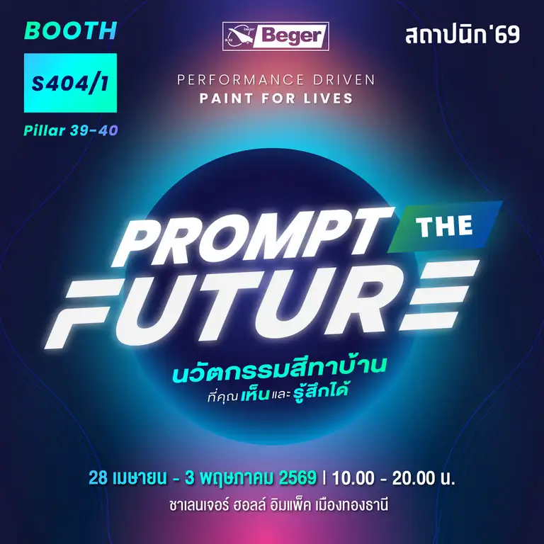 บริษัท สีเบเยอร์ จำกัด ตอกย้ำความเป็นผู้นำด้านนวัตกรรมสีระดับประเทศ สร้างปรากฏการณ์ใหม่ในงานสถาปนิก'69 ด้วยการประกาศจุดยืน "No.1 Coating Innovation Brand" พร้อมเปิดตัวบูธภายใต้แนวคิด "Prompt the Future" ที่ผสานพลังของ Innovation และ Sustainability อย่างเป็นรูปธรรม ยกระดับมาตรฐานงานอีเวนต์สู่ Zero Waste Design อย่างเต็มรูปแบบ ระหว่างวันที่ 28 เมษายน - 3 พฤษภาคม 2569 ณ ชาเลนเจอร์ ฮอลล์ อิมแพ็ค เมืองทองธานี