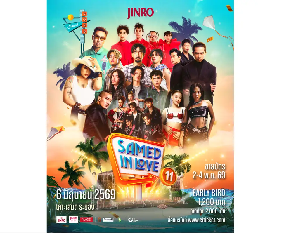 เสม็ด 11 จะไม่เหมือนเดิมอีกต่อไป! กับการกลับมาของเทศกาลดนตรีที่ยิ่งใหญ่ที่สุด หนึ่งเดียวบนเกาะเสม็ดที่ทุกคนรอคอย JINRO presents Samed in Love 11 โดยผู้จัด CI Showbiz ที่ปีนี้ได้ยกทั้งเกาะให้กลายเป็น Beach Festival เต็มรูปแบบ ที่พาทุกคน ร้อง เล่น เต้นบนน้ำ จนถึงครั้งที่ 11 ในปีนี้ กับปาร์ตี้เฉลิมฉลองสุดพิเศษบนหาดทราย ที่เริศกว่าครั้งไหนๆ พาทุกคนฟินไปกับเสียงเพลง และเสียงดนตรี พร้อมเนรมิตจุดถ่ายรูปฉ่ำทั่วทั้งงาน ถ่ายมุมไหนก็ได้คอนเทนต์อัพรูปอวดให้สนั่นโซเชียล รวมทุกโมเมนต์ของซัมเมอร์ไว้ในที่เดียว ในวันเสาร์ที่ 6 มิถุนายน 2026 เกาะเสม็ด จ.ระยอง
