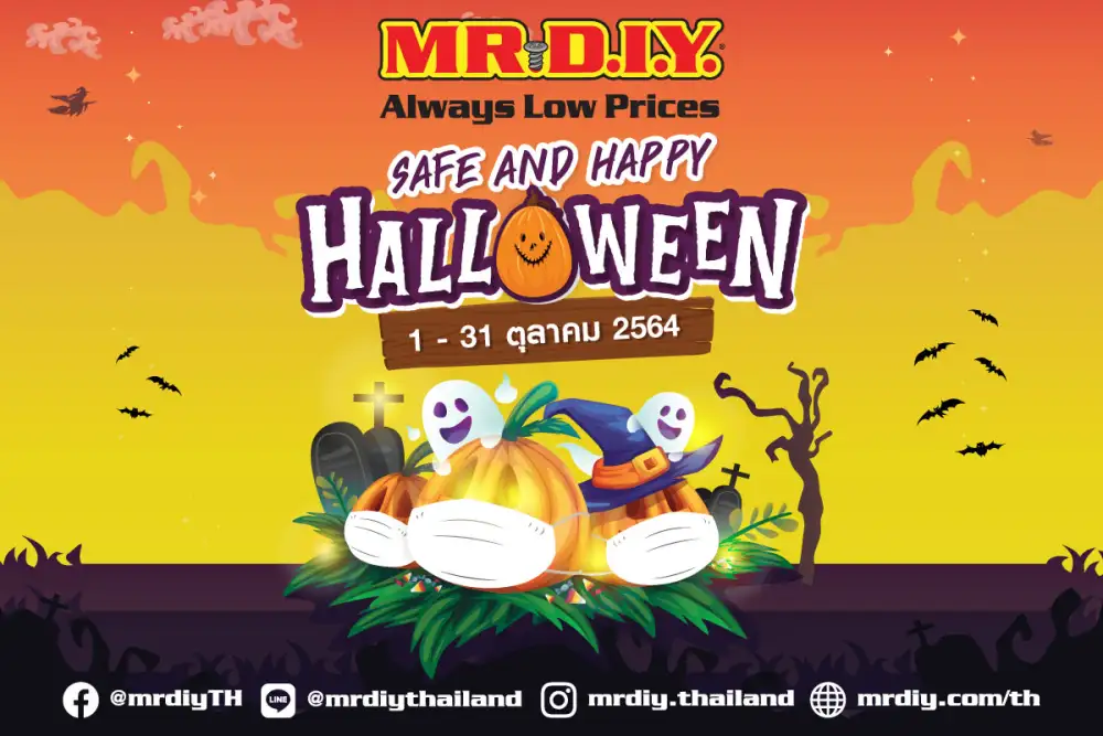 มิสเตอร์. ดี.ไอ.วาย. ผู้ค้าปลีกสินค้าตกแต่ง และซ่อมแซมบ้านรายใหญ่ที่สุดในเอเชีย จัดขบวนสินค้าต้อนรับฮาโลวีนที่ร้านมิสเตอร์. ดี.ไอ.วาย. กับสินค้าตกแต่งเทศกาลฮาโลวีนมากมายที่ทำให้คุณได้อินเทรนด์ ไม่ว่าจะเป็นหน้ากากแฟนซี หมวกประดับศรีษะ ชุดแฟนซี ไฟประดับตกแต่ง และอื่น ๆ อีกมากมาย จัดเต็มพร้อมจะออกไปทริค ออทรีด แบบ New Normal แล้วมาพบกับสินค้าเทศกาลฮาโลวีนได้ ตั้งแต่วันนี้ ถึง 31 ตุลาคม 2564 ที่ร้านมิสเตอร์. ดี.ไอ.วาย. สาขาที่ร่วมรายการ และจนกว่าสินค้าจะหมด