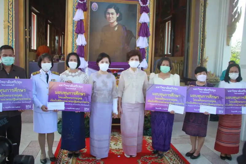 นอกจากนี้ ภายในพิธีถวายผ้าพระกฐินพระราชทาน ดร.รัชนีพร พุคยาภรณ์ พุกกะมาน อธิการบดีมหาวิทยาลัยศรีปทุม ได้เป็นประธานมอบเงินทุนการศึกษา โดยเสด็จพระราชกุศล แก่ โรงเรียนต่างๆภายในจังหวัดชลบุรี จำนวน 5 แห่ง รวมทั้งสิ้น 15 ทุน เป็นจำนวนเงิน 20,000 บาท ซึ่งได้แก่ โรงเรียนวัดบุญญราศรี "ตำหรุราษฎร์อุปถัมภ์ จำนวน 4 ทุน ทุนละ 4,000 บาท ,โรงเรียนวัดศรีพโลทัย จำนวน 4 ทุน ทุนละ 4,000 บาท ,โรงเรียนวัดราษฎร์สโมสร จำนวน 3 ทุน ทุนละ 4,000 บาท ,โรงเรียนชลบุรี "สุขบท" จำนวน 2 ทุน ทุนละ 4,000 บาท และโรงเรียนบ้านสวน "จันอนุสรณ์" จำนวน 2 ทุน ทุนละ 4,000 บาท อีกด้วย