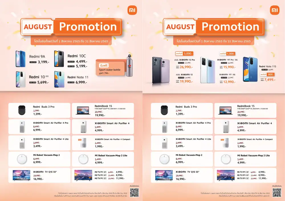 พบกับโปรโมชั่นพิเศษตลอดเดือนสิงหาคม ในระหว่างวันที่ 1 - 31 สิงหาคม 2565 ได้ที่ Xiaomi Store และร้านตัวแทนจำหน่ายที่ร่วมรายการทั่วประเทศ