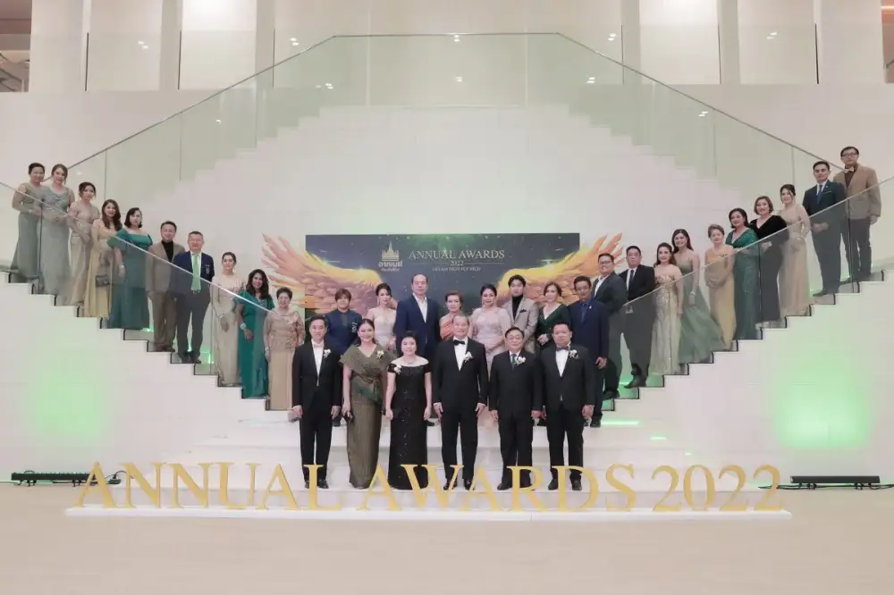 นายโชติพัฒน์ พีชานนท์ ประธานกรรมการบริหาร (แถวหน้า - กลางขวา) นางอาทินันท์ พีชานนท์ รองประธานกรรมการบริหาร (แถวหน้า - กลางซ้าย) ดร.อภิชัย บุญธีรวร กรรมการ บริษัท ไทยกรุ๊ป โฮลดิ้งส์ จำกัด (มหาชน) (แถวหน้า - ที่ 2 จากขวา) และ นางภฤตยา สัจจศิลา กรรมการผู้จัดการ บริษัท อาคเนย์ประกันชีวิต จำกัด (มหาชน) (แถวหน้า - ที่ 2 จากซ้าย) จัดงาน Annual Awards 2022 ภายใต้คอนเซ็ปต์ "Dream High Fly High" ร่วมฉลองความสำเร็จ พร้อมมอบรางวัลเกียรติยศแห่งความภาคภูมิใจให้แก่สุดยอดผู้บริหารและตัวแทนผู้พิชิตคุณวุฒิที่ทำยอดขายสูงสุดประจำปี 2565 ณ ศูนย์การประชุมแห่งชาติสิริกิติ์ ห้อง Plenary Hall 1 เมื่อ เร็ว ๆ นี้