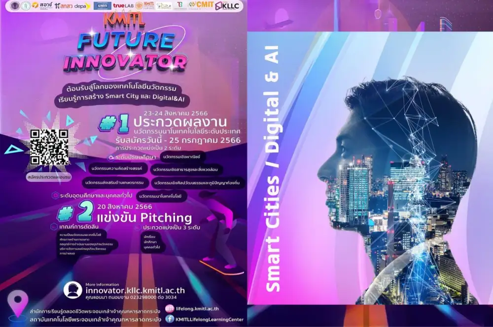 ก้าวสู่ปีที่ 64 การก่อตั้ง...มุ่งสร้างเสริมทัพ 'นวัตกรคนรุ่นใหม่' สำหรับประเทศไทย สถาบันเทคโนโลยีพระจอมเกล้าเจ้าคุณทหารลาดกระบัง (สจล.) โดย สำนักการเรียนรู้ตลอดชีวิตพระจอมเกล้าเจ้าคุณทหารลาดกระบัง (KLLC) ร่วมกับวิทยาลัยเทคโนโลยีและนวัตกรรมวัสดุ สจล. เชิญนักเรียน นักศึกษา และบุคคลทั่วไป เปิด 2 เวทีประกวด คือ งานประกวดผลงานนวัตกรรมนาโนเทคโนโลยีระดับประเทศ ชิงถ้วยรางวัลยิ่งใหญ่ และงานประกวดไอเดียแนวคิดนวัตกรรม (Pitching) รางวัลมูลค่ารวมกว่า 185,000 บาท ในงาน "KMITL Future Innovator 2023" ภายใต้ธีมการแข่งขัน Smart Cities, Digital & AI ณ สำนักการเรียนรู้ตลอดชีวิตพระจอมเกล้าเจ้าคุณทหารลาดกระบัง (KLLC) อาคารเฉลิมพระเกียรติ ชั้น 1 โซน A (ติดหอประชุมใหญ่) ถนนฉลองกรุง เขตลาดกระบัง
