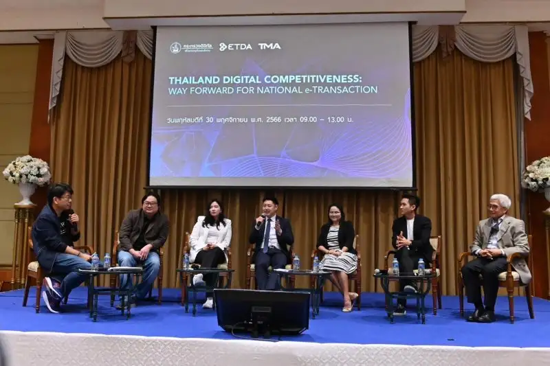 นอกจากนั้น ภายในงาน ETDA ยังได้เปิดเวทีเสวนาระหว่างผู้บริหารชั้นนำจากหน่วยงานภาครัฐและเอกชน ที่ช่วยขับเคลื่อนด้านพาณิชย์อิเล็กทรอนิกส์ของประเทศ เพื่อสะท้อนมุมมองสถานการณ์ของไทย ประสบการณ์การผลักดันในระดับปฏิบัติการ เพื่อขับเคลื่อนการยกระดับขีดความสามารถด้านดิจิทัลของไทย รวมถึงเปิดโอกาสให้ผู้เข้าร่วมงานได้สะท้อนความต้องการการสนับสนุนของภาครัฐในด้าน e-Transaction อีกด้วย