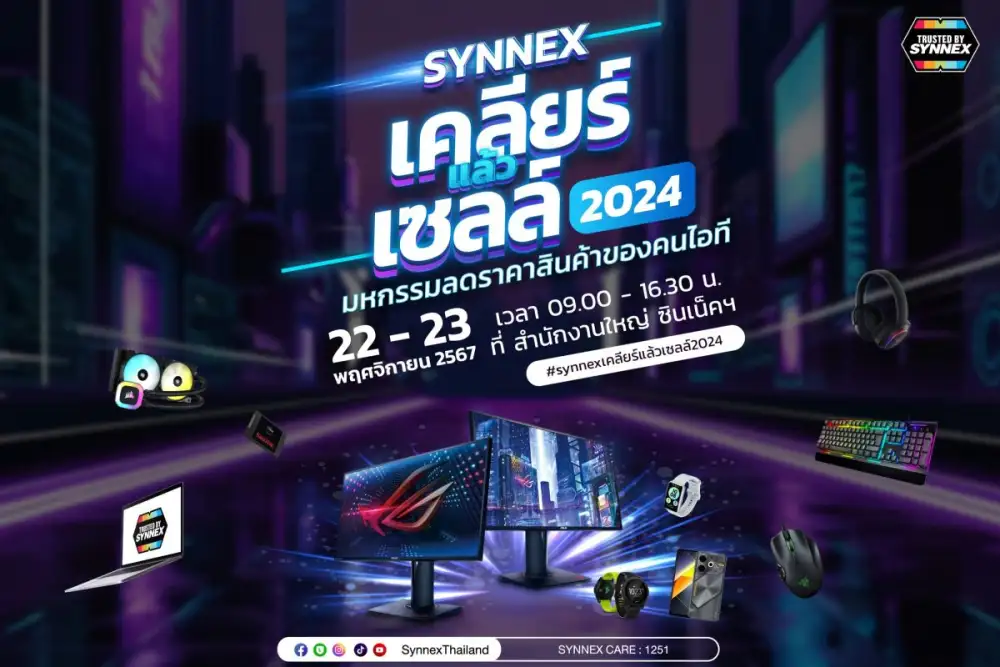 บริษัท ซินเน็ค (ประเทศไทย) จำกัด (มหาชน) ดิสทริบิวเตอร์ผู้นำด้านไอทีอีโคซิสเต็ม พร้อมสร้างความคึกคักกับงานใหญ่ประจำปี "SYNNEX เคลียร์แล้วเซลล์ 2024" มหกรรมลดราคาสินค้าไอทีแบบจัดหนักแห่งปี ลดสูงสุดถึง 70% เอาใจคนรักไอที และนักช้อปที่มองหาสินค้าคุณภาพภายใต้สัญลักษณ์ Trusted by Synnex ในราคาที่คุ้มค่า ห้ามพลาด! เตรียมพบกันวันที่ 22-23 พฤศจิกายนนี้ ตั้งแต่เวลา 09.00 น. - 16.30 น. ที่ซินเน็คฯ (สำนักงานใหญ่) ถนนสุคนธสวัสดิ์