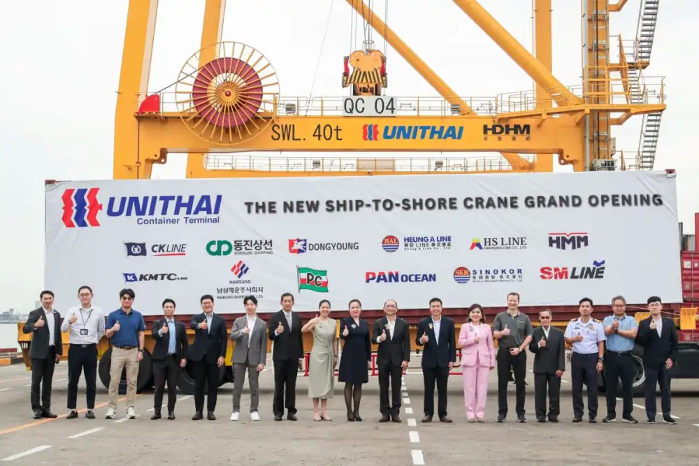 บริษัท ยูไนเต็ด ไทย ชิปปิ้ง จำกัด หรือ ท่าเรือยูนิไทย เปิดตัวอุปกรณ์ปั้นจั่นพลังงานไฟฟ้ายกตู้สินค้าชุดใหม่หน้าท่า (New Ship-To-Shore Crane) ได้รับมอบจาก Wuxi HuaDong Heavy Machinery Co., Ltd. (HDHM) ซึ่งเป็นบริษัทที่มีชื่อเสียงในอุตสาหกรรมเครื่องจักรสำหรับท่าเรือ เชี่ยวชาญในการผลิตปั้นจั่นหลายประเภท พร้อมยกระดับมาตรฐานการให้บริการที่มีความรวดเร็วและแม่นยำในการยกและเคลื่อนย้ายตู้สินค้า เพิ่มประสิทธิภาพในการทำงานของท่าเรือ บริการขนส่ง ระบบโลจิสติกส์ และการจัดการคลังสินค้าได้อย่างเต็มประสิทธิภาพ เดินหน้าผู้นำอุตสาหกรรมขนส่งและโลจิสติกส์ โดยได้รับเกียรติจาก คุณชิรพงค์ ก่อกิจสัมมากุล Head of Thailand Shipping and Logistics บริษัท ยูไนเต็ด ไทย ชิปปิ้ง จำกัด, คุณวศะ จันทร์แสงสุก ผู้ช่วยผู้จัดการทั่วไป ท่าเรือยูนิไทย (Unithai Container Terminal), คุณจรรย์จิรา พนิตพล Head, Corporate office Thailand, คุณสุภารัตน์ เอกจิตราอมร Country Finance Head of Unithai Group และ Ms. Faye Liu Senior Vice President (Port Equipment Business) เข้าร่วมพิธีตัดริบบิ้นเปิดตัวอย่างเป็นทางการ และได้มีการสาธิตการใช้งานอุปกรณ์ปั้นจั่นพลังงานไฟฟ้าให้แขกผู้เกียรติได้รับชมประสิทธิภาพการทำงาน ท่าเรือยูนิไทยมีความมุ่งมั่นที่จะพัฒนาศักยภาพและขยายบริการด้านการขนส่งทางน้ำให้มีความทันสมัยและมีประสิทธิภาพมากยิ่งขึ้น เพื่อรองรับความต้องการของลูกค้าและการเติบโตของอุตสาหกรรมโลจิสติกส์อย่างยั่งยืนในอนาคต